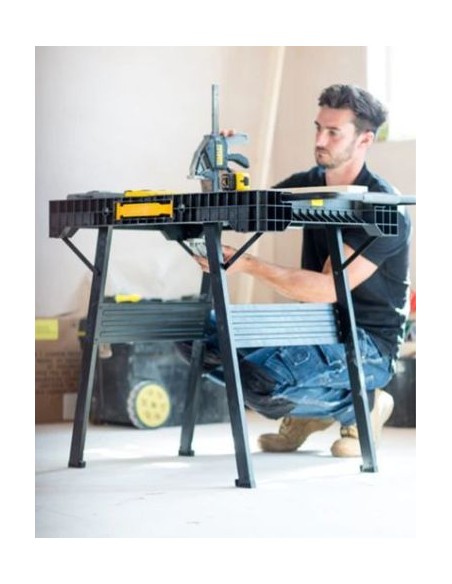 L'établi pliable STANLEY FATMAX se replie et se déplie très rapidement et facilement en seulement 5 secondes.