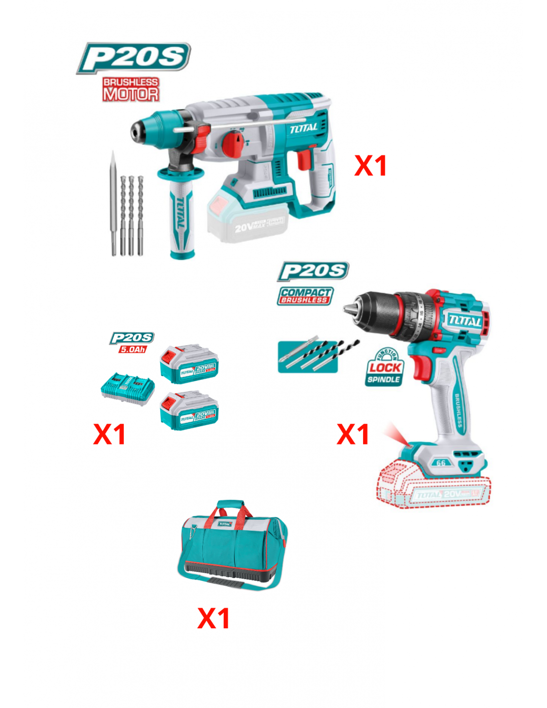 Jeu de 2 batteries au lithium de 5 Ah et chargeur double 20 V . Batteries compatibles avec les outils TOTAL P20S.