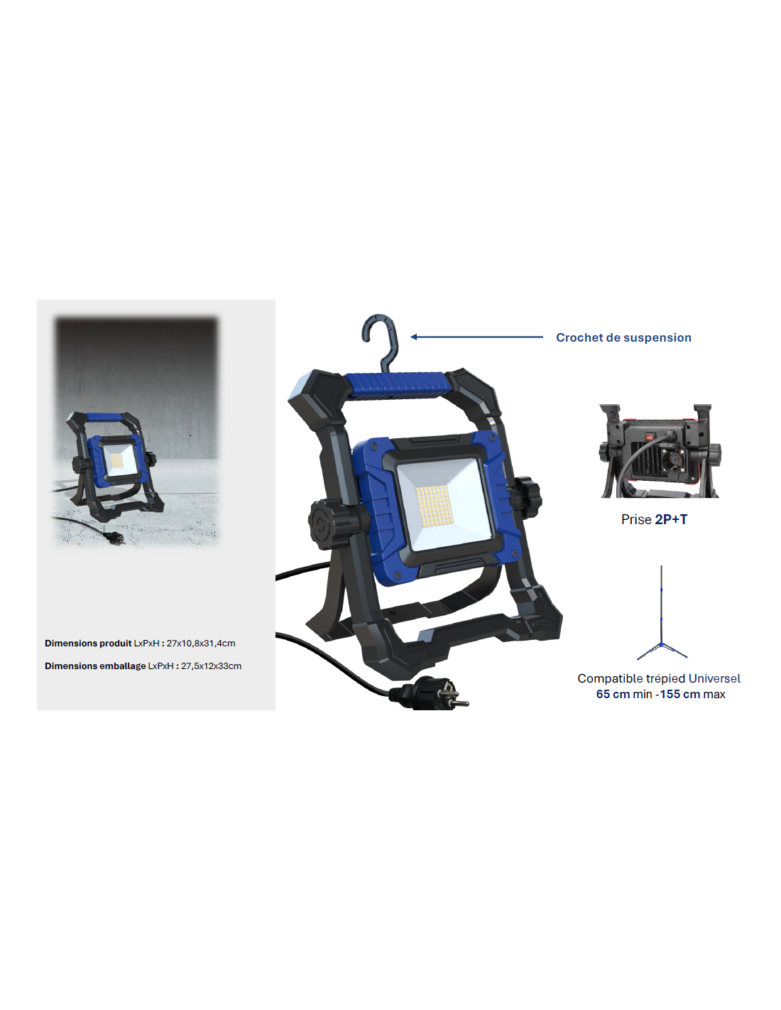 PROJECTEUR FILAIRE 50W 4000 LUMENS IP54 +PRISE