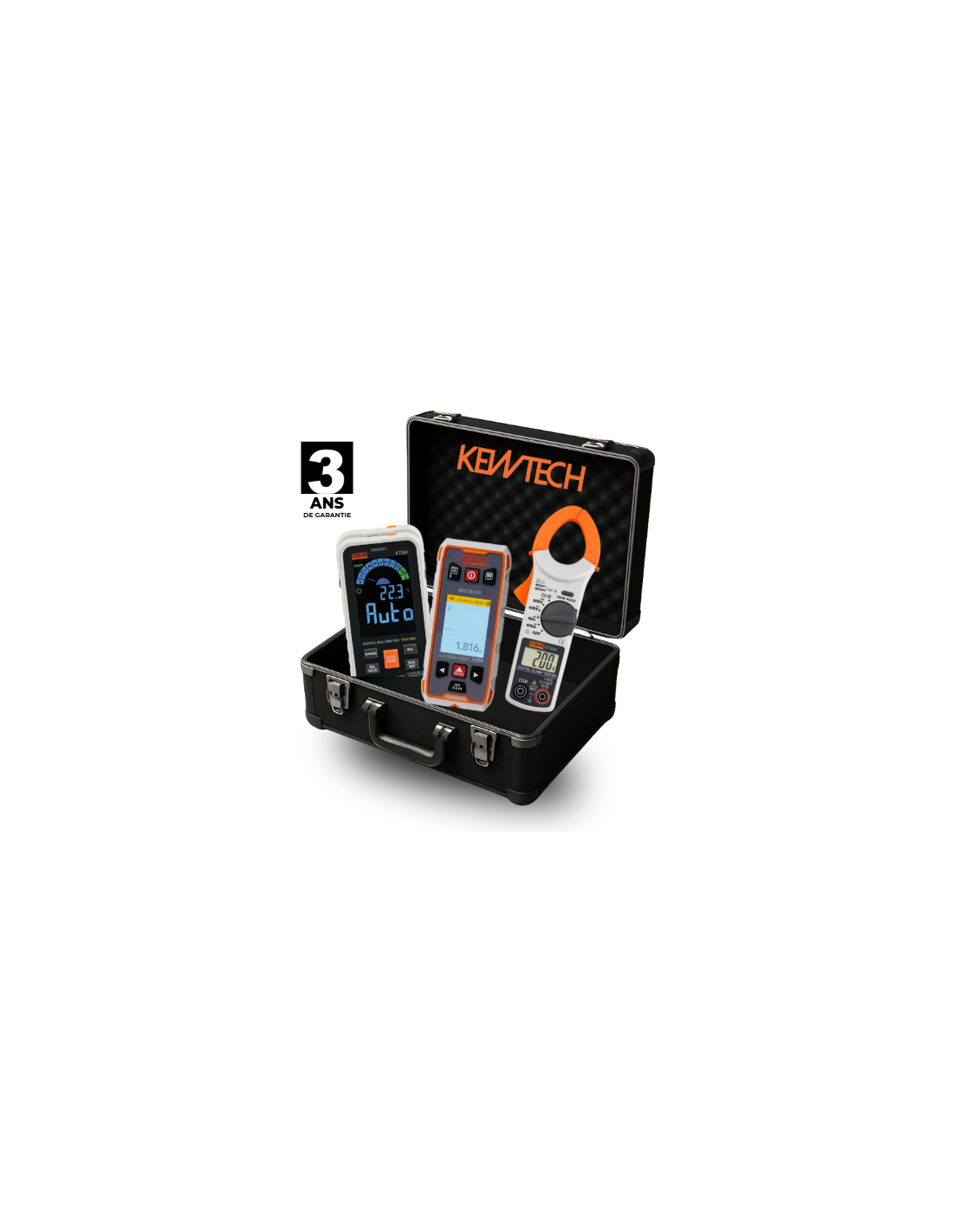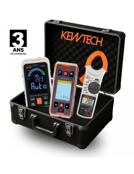 FORMAT: Le multimètre KT350 est au format d’un téléphone portable, livré avec une gaine antichoc et il est livré dans un étui de transport semi-rigide.