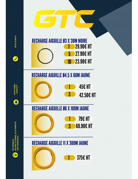 Recharge pour aiguille de tirage en fibre de verre vous permettra de remplacer votre aiguille de 30M pour vos raccordements sans remplacer votre dévidoir.