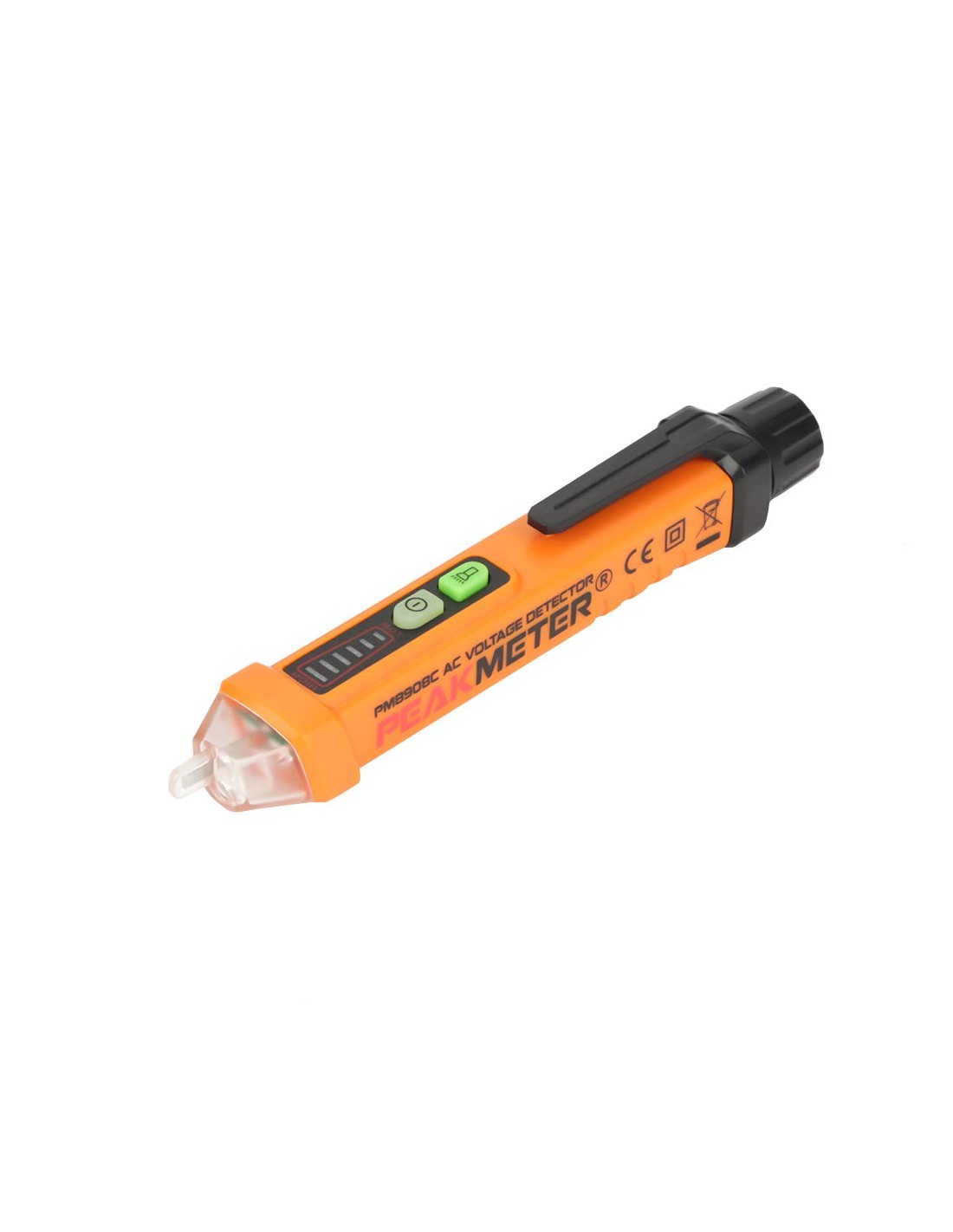 Testeur multifonction stylo avec détection sans contact 12-1000V, mesure de tension AC/DC jusqu'à 600V, résistance jusqu'à 20MΩ, test de diodes et continuité, écran LCD 2000 points et alarme sonore/visuelle par 6 LEDs.