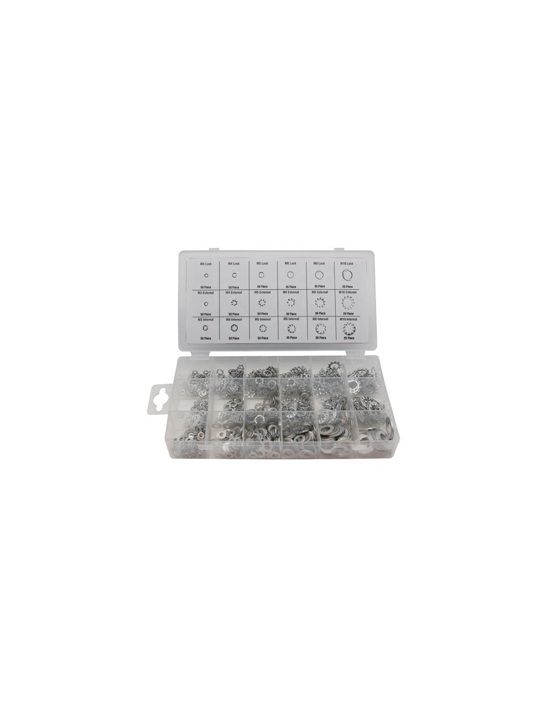 Ce jeu contient un vaste assortiment de rondelles de serrage, des rondelles à denture externe et interne dans un kit pratique! Les rondelles sont adaptées à un usage domestique comme dans un atelier, la finition zinguée assure une protection anti-oxydation et anticorrosion. Les rondelles sont livrées dans un coffret refermable en plastique avec un tableau de mesure pour une identification de taille facile et rapide.