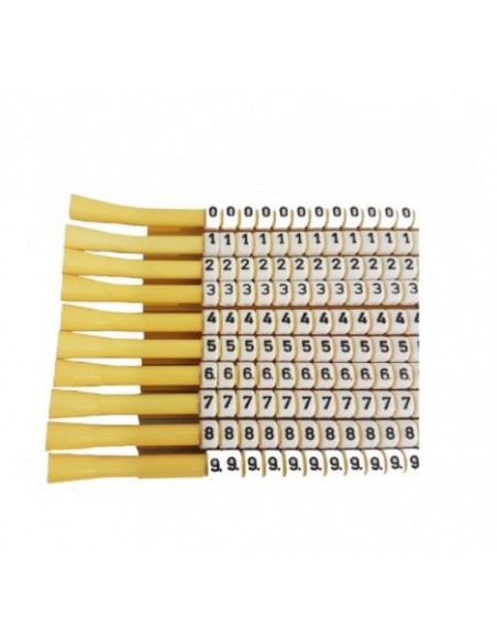 Les bagues Pliosnap PS-12 blancs écriture noire permettent le repérage de la bluelite. Installé sur une tige jaune, il suffit de les glisser individuellement sur le câble à l'aide de l'extrémité du pouce pour les installer.