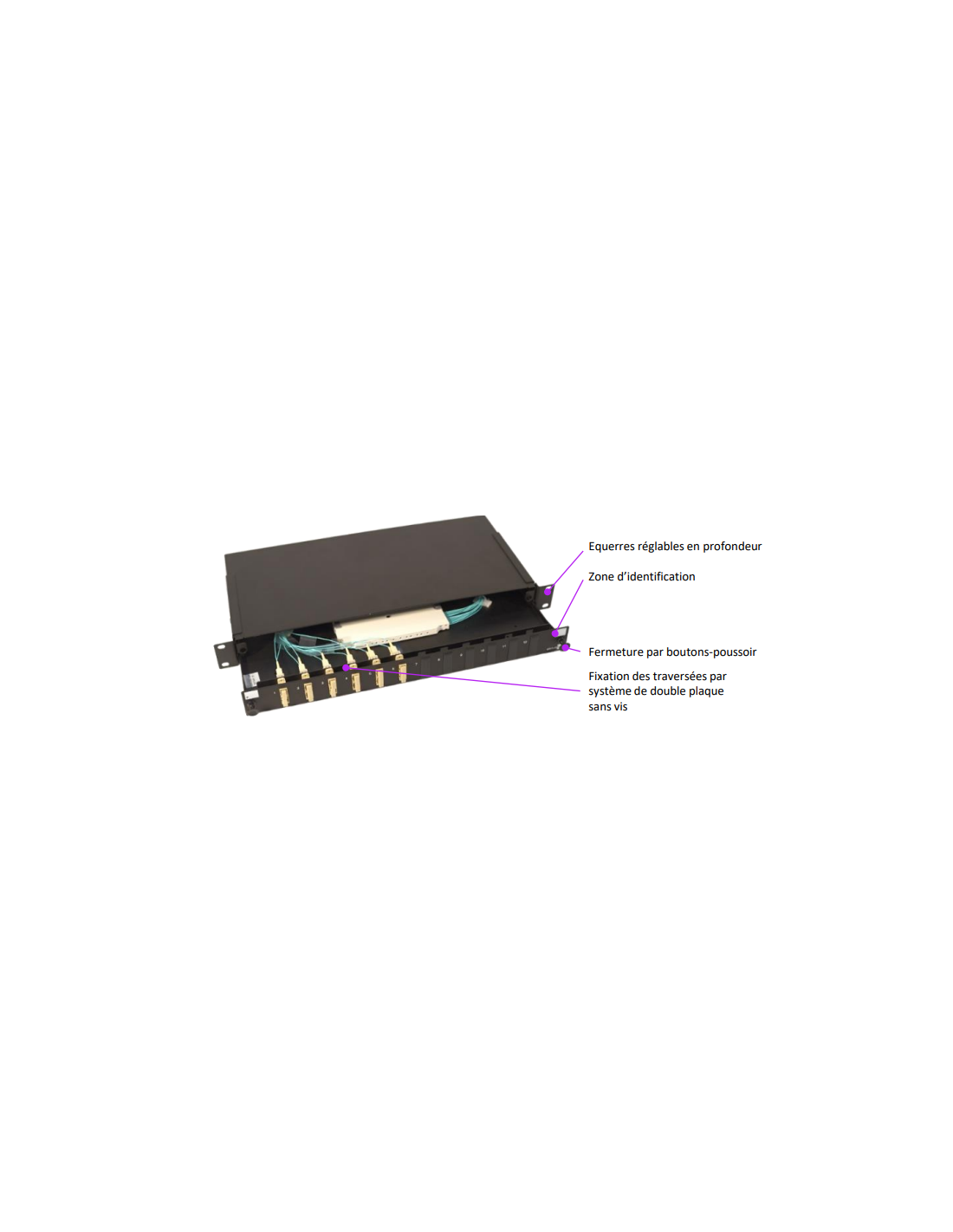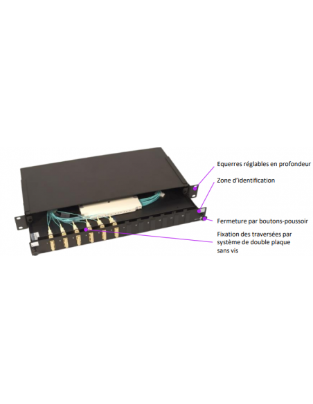 - Capacité maximale de 24 brins et 12 SC duplex par tiroir.