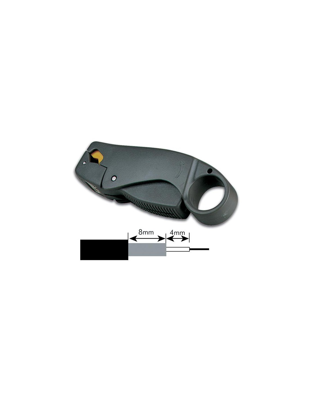 Dénudeur de câbles coaxiaux avec 3 couteaux réglables. Dénudage de câbles RG-58 / 59 / 62. Enlève également l'isolation extérieure.