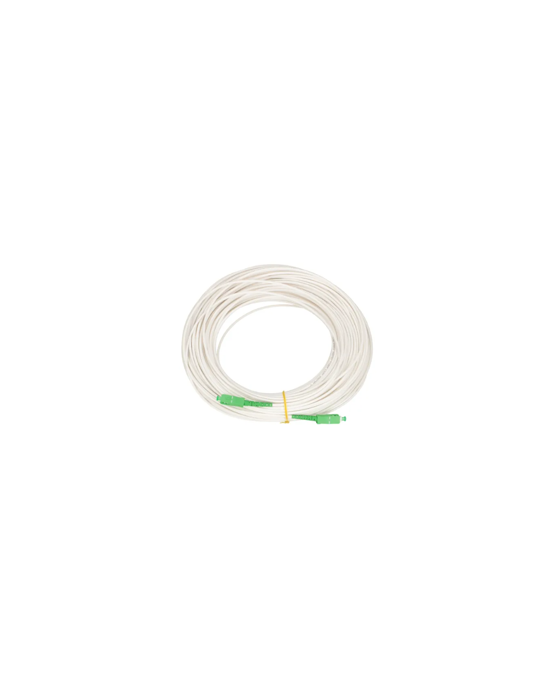 Câble de cordon de brassage blanc monomode avec une longueur de 20m. diamètre de câble de 3 mm. terminé par des connecteurs SC/APC-SC/APC est utilisé pour connecter des équipements optiques de réseau tels que des commutateurs ou des convertisseurs. Le produit est composé de matériau qui n’émet pas de gaz nocifs lors d’un incendie(LSOH).