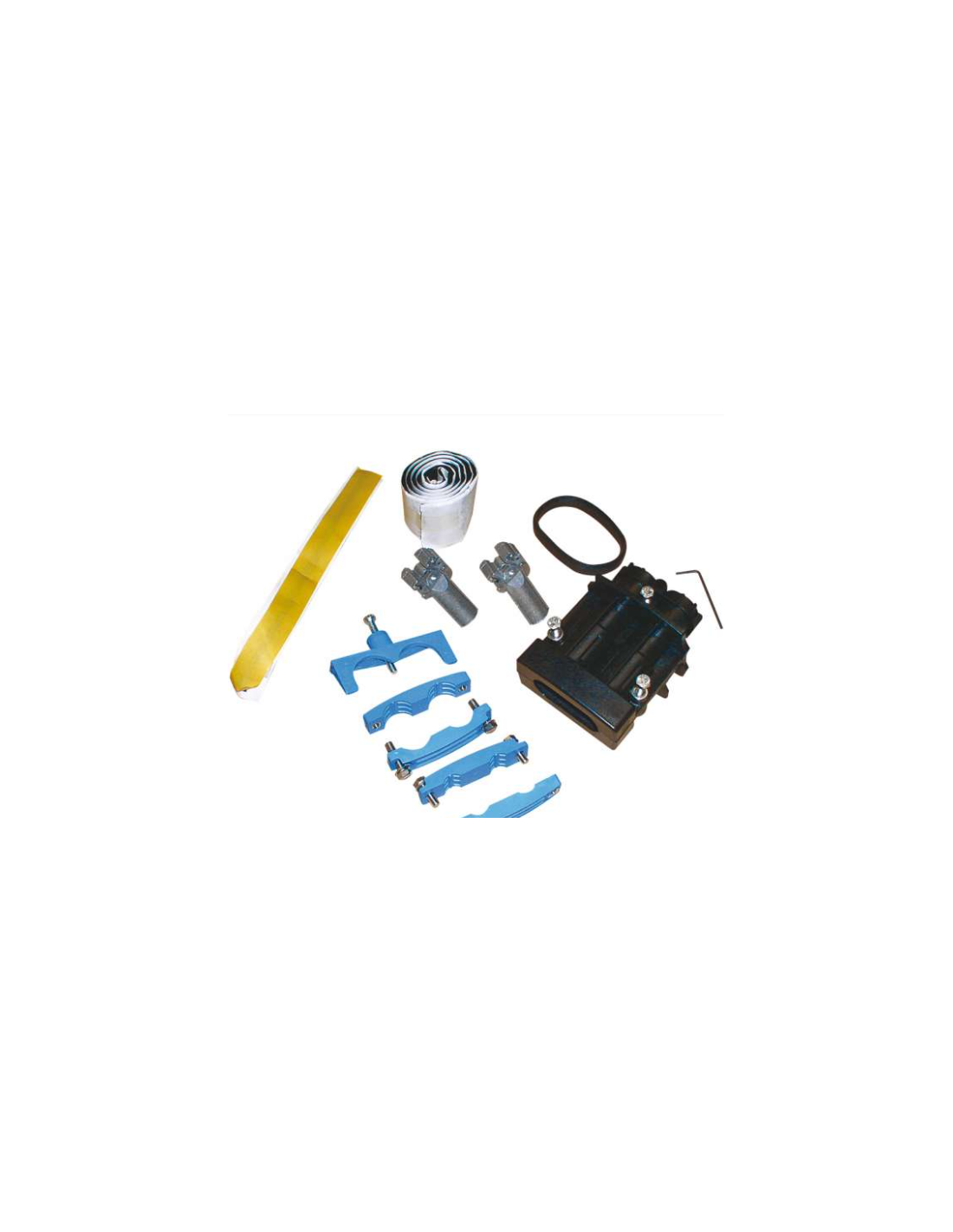 Kit d’entrée de câble mécanique multi-pièces double pour câble en passage assurant l’étanchéité des entrées de câbles dans les protections d’épissures de type BPE-O taille 1.
