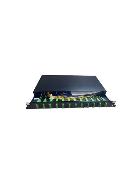 Tiroir optique coulissant en acier peint, finition noire , conçu pour le raccordement et la gestion de fibres optiques monomodes. Idéal pour les applications de brassage, de soudure ou de liens préconnectorisés.