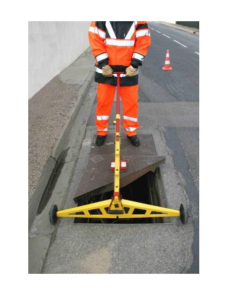 L'intervenant n'a plus qu'à faire des rotations pour déplacer et déposer les plaques et tampons car les roues élargies permettent une mobilité d'avant en arrière.